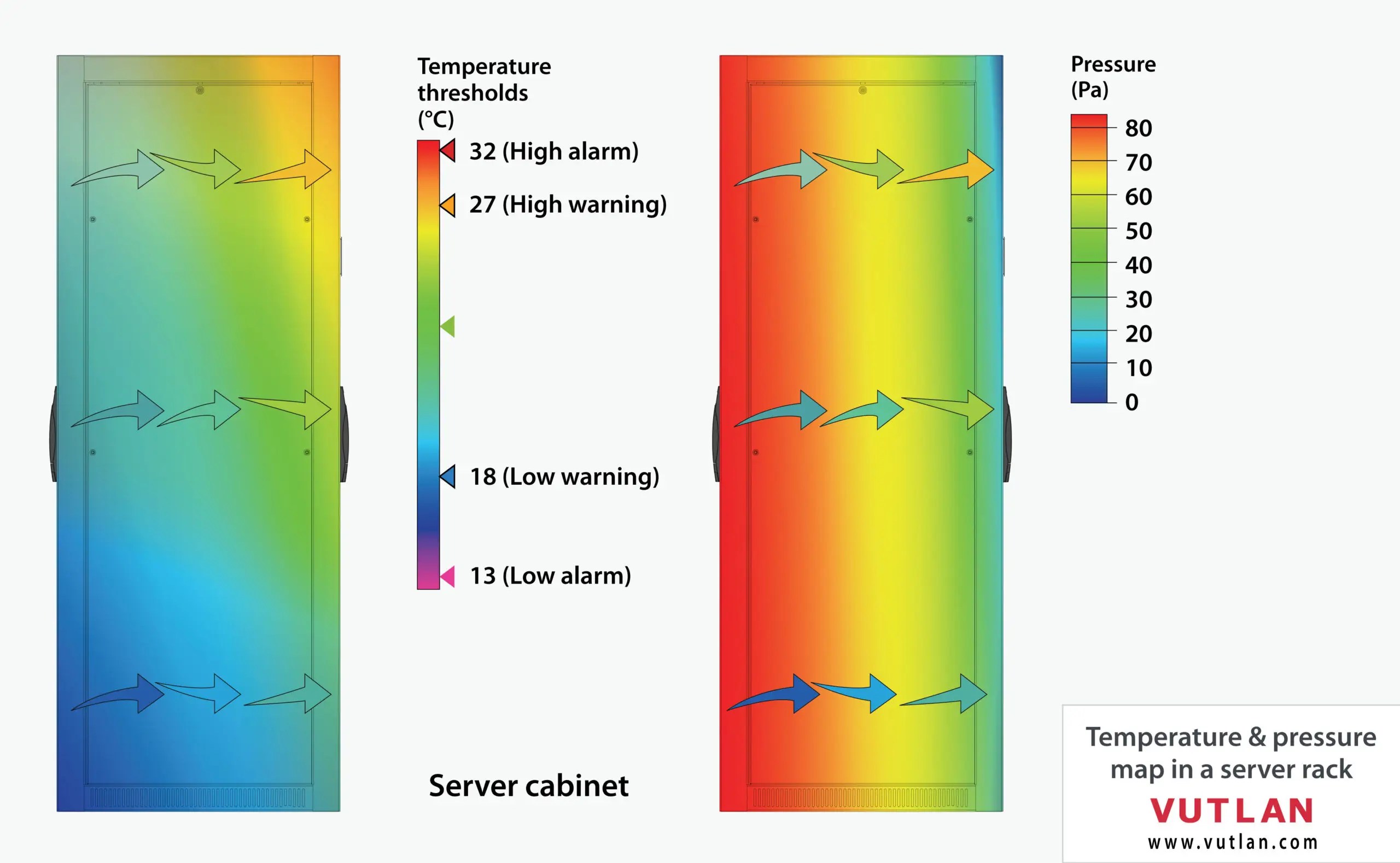 Sensor Vutlan dapat menangkap kondisi termal penuh dari rak/fasilitas dan semua peralatannya serta memantau parameter tambahan seperti tekanan dan kelembaban. Data ini dapat diplot untuk setiap rak individu guna membuat Pemetaan Termal di dalam antarmuka web Vutlan. Atau data ini dapat dikirim menggunakan protokol SNMP ke perangkat lunak analitik computational fluid dynamics (CFD).